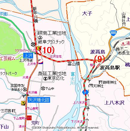 | (9) | 波高島T字路 | 203 | 左折 | R300 | 16.5 | 69.2 | 富山橋渡る |